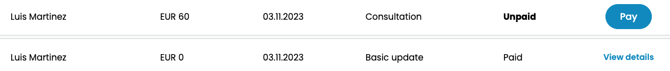 - Payment Links: Your professional may use their own payment methods, such as Stripe, Revolut, Wise, or others. In this instance, the professional will request payment from you via their own method.